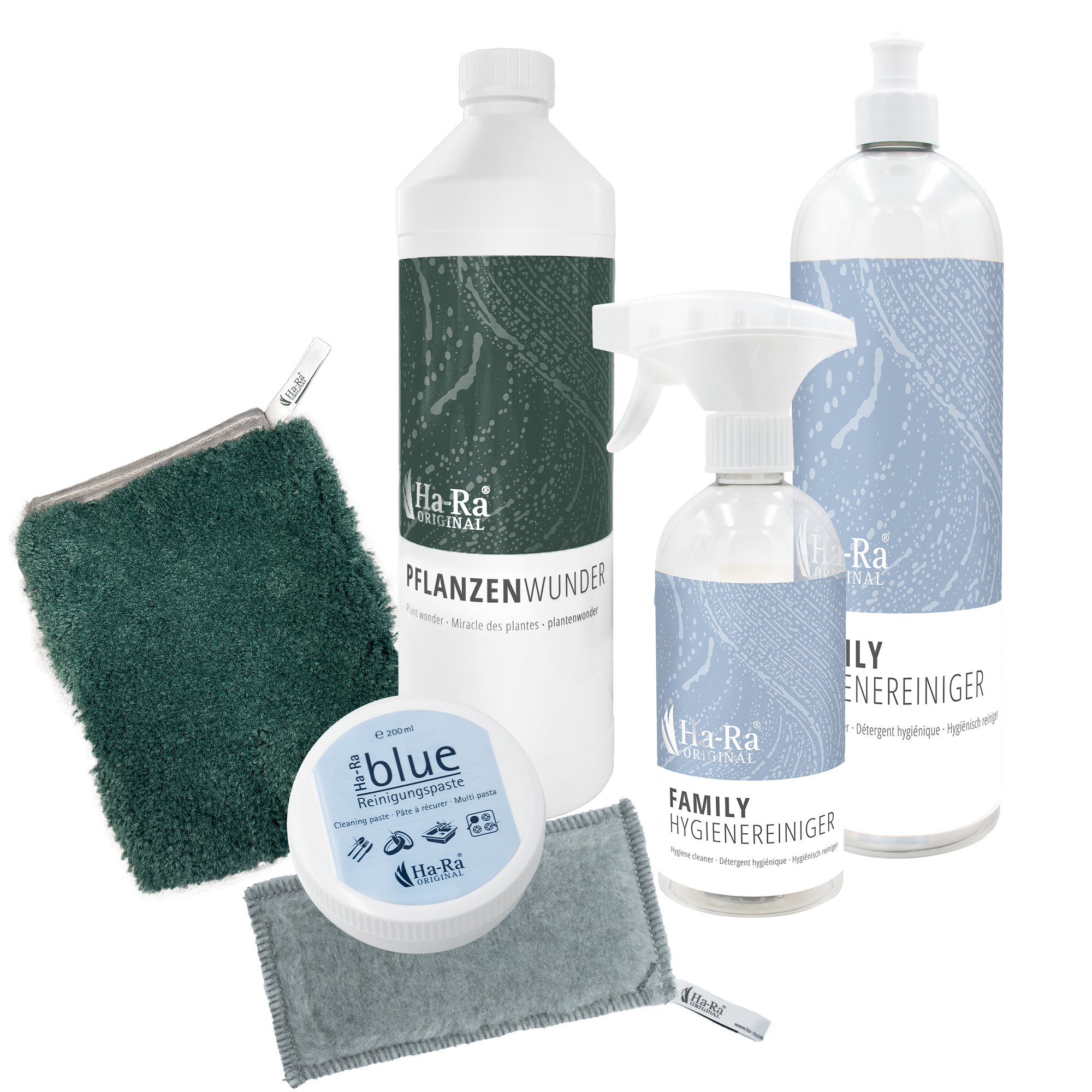 » Bei starken Verschmutzungen unverdünnt aufsprühen, einwirken lassen und mit einer Ha-Ra Faser oder einem Ha-Ra Tuch abnehmen.